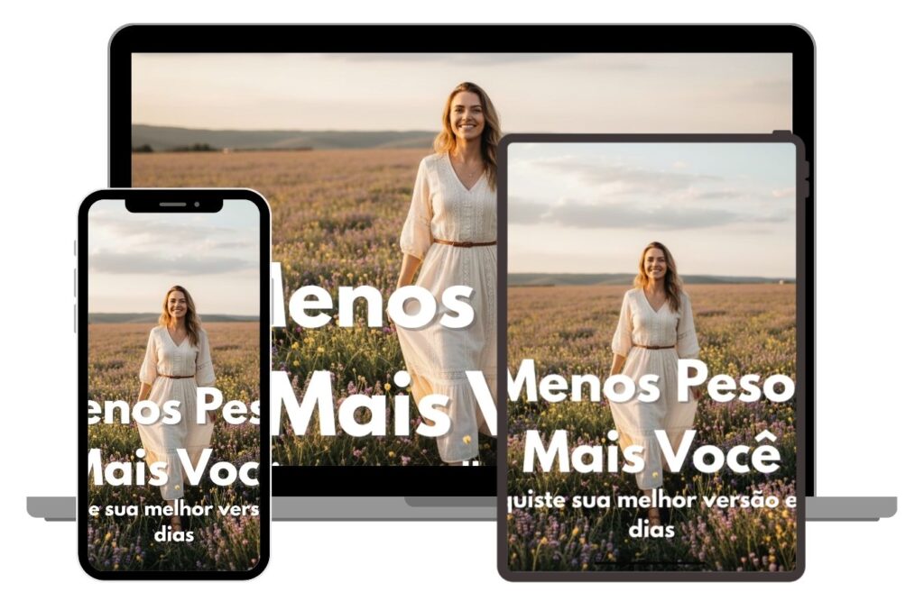 O Menos Peso, Mais Você é um ebook prático de emagrecimento feminino que une nutrição consciente, estratégias simples de movimento e fortalecimento emocional. Ele foi criado para ajudar você a emagrecer de forma saudável, recuperar a autoestima e construir uma relação leve com a comida — sem dietas restritivas, medicamentos ou soluções extremas.